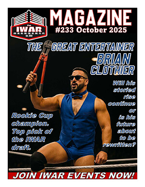 "Our 233rd cover features 'The Great Entertainer' Brian Clothier (NWL), an outstanding rookie who is gaining fame and foes at a similar pace. He's led the Maryland Militia along with G-Force Garrie Morris and a Random Baltimore Vagrant (RBV) to battle the Fish Fam for domination of the IWA's rookie league, which caught the eye of every IWAR Commissioner, so it was no surprise when Brian was the first-overall pick in the 2025 IWAR Draft. Clothier won the All-Rookie Cup and, along with Morris, was a finalist for the Badd Co. Cup, which makes us wonder: what can't the Great Entertainer do? Check out the NWL and see for yourself.