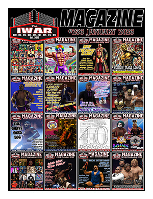"The cover of our 236th issue features most of the covers from 2025, and as we ramp up for a big super-sized awards issue, we get ready with an action-packed start to the new year. The 8th Ladder Match Battle Royal results are in, but we are delaying their release to put together a better write-up because, it turns out, we need more vacation time! Don't forget, this cycle is the launch of the IWAR 'Spring' Events: the Johnny B Cup, the Marano Memorial Tag-team Tournament, the Catfish/Clark Classic, and the 2nd annual IWAR Cup!
