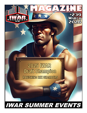 "The 239th edition of the IWAR Magazine features the winner of the 2025 IWAR Draft, Ravishing Rex Chambers (WTL), whose end-of-the-year run captured the WTL Wrestler of the Year honor and sealed the deal with the IWAR Draft contest. While red-hot rookies The Great Entertainer Brian Clothier and 'G-Force' Garrie Morris (NWL) were the first-overall pick in the draft, it may be that Rex used his falling all the way to the 19th pick as motivation to beat the field. Rex went on to defeat Punk Rock Mike (BRL) to capture the IWAR Revolution Championship with the title shot he earned for winning the IWAR Draft. Congratulations!